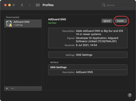 Choose a DNS server according to your preferences and press the button to download a configuration profile.