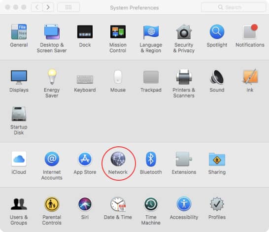 Select Wi-Fi for wireless connections or Network for cable connections and click the cogwheel next to the required connection.